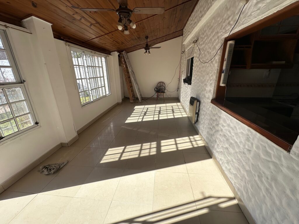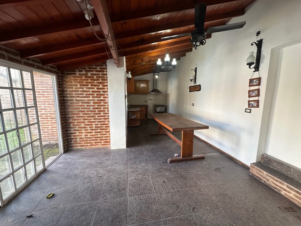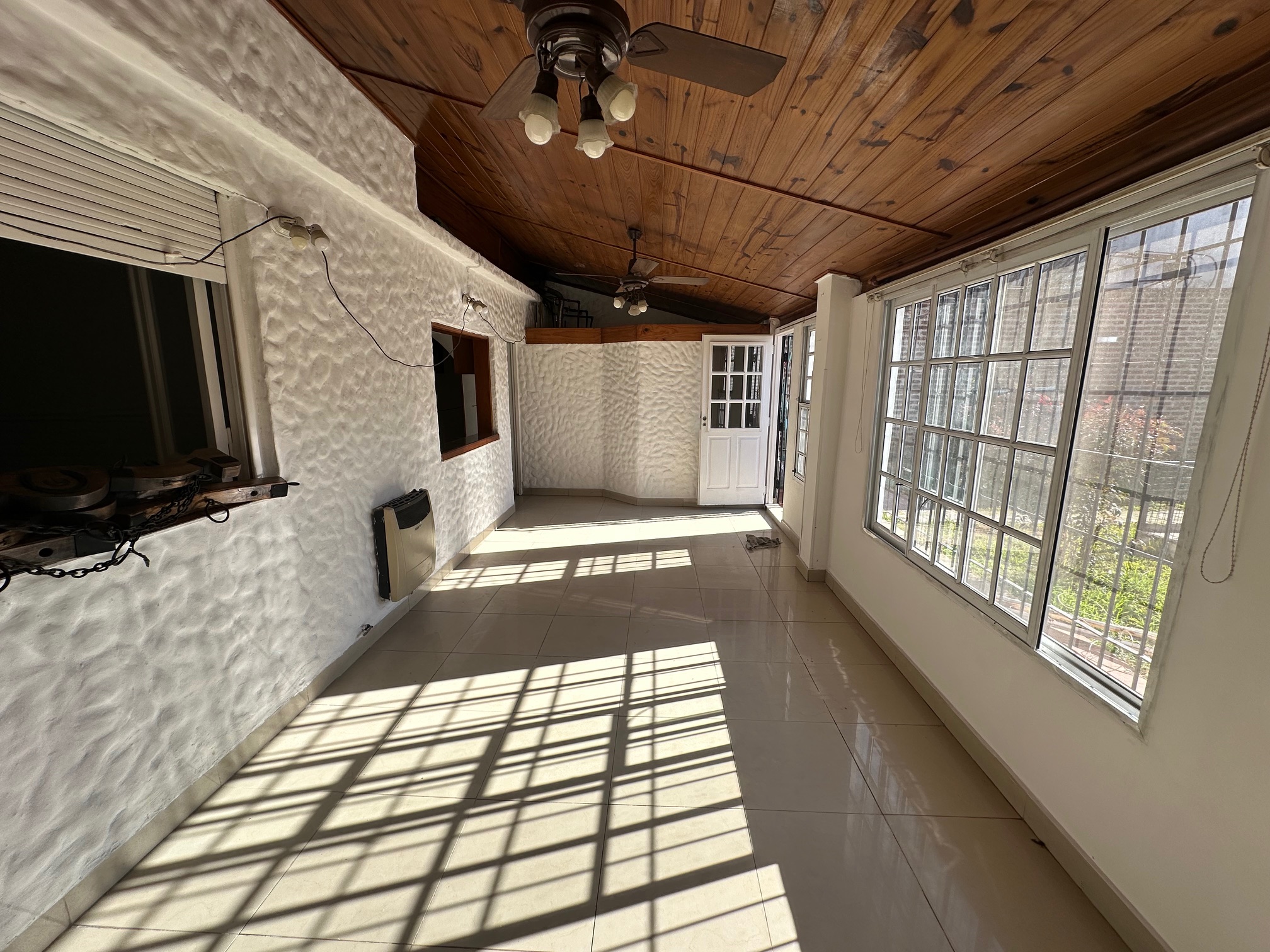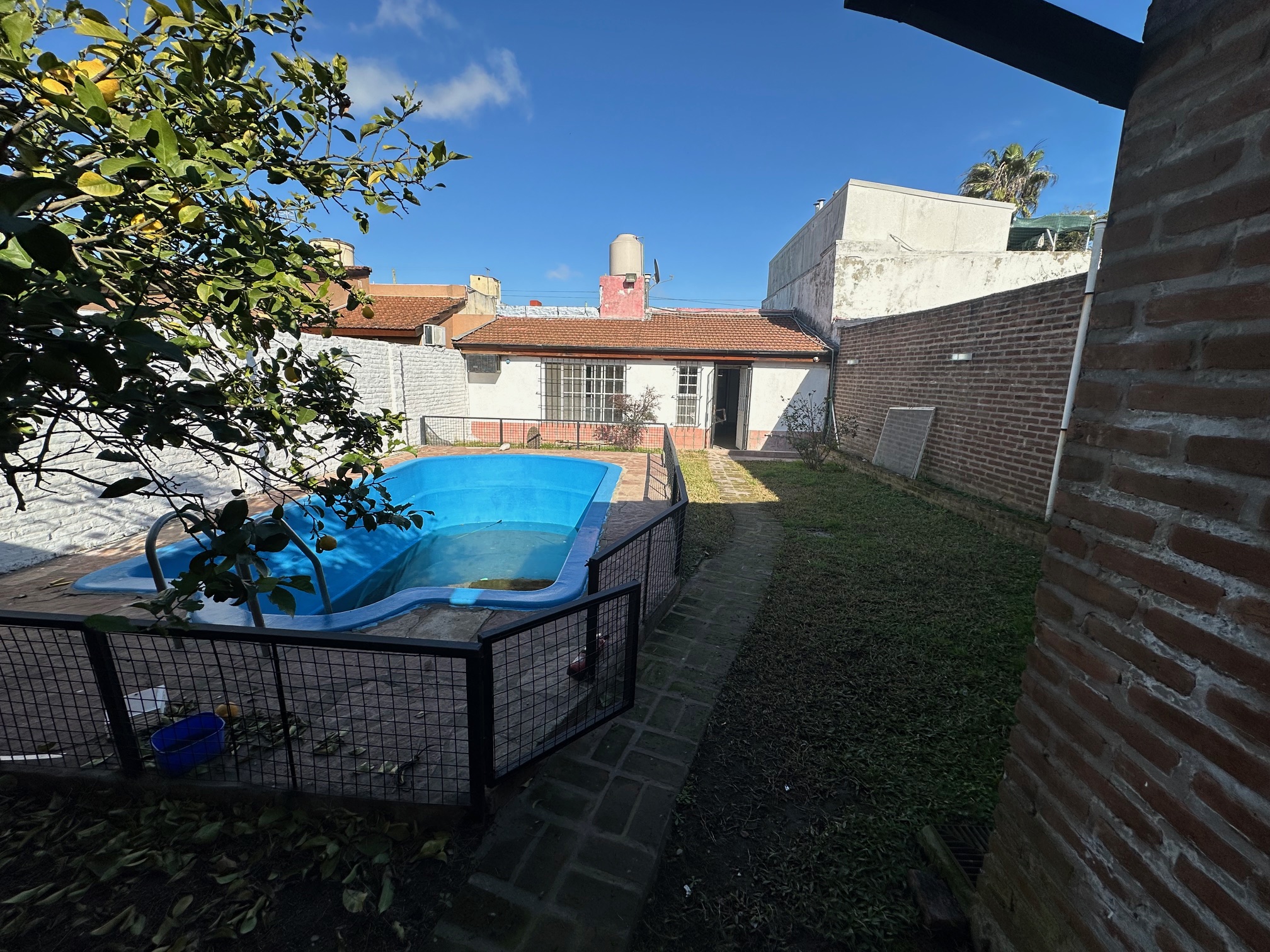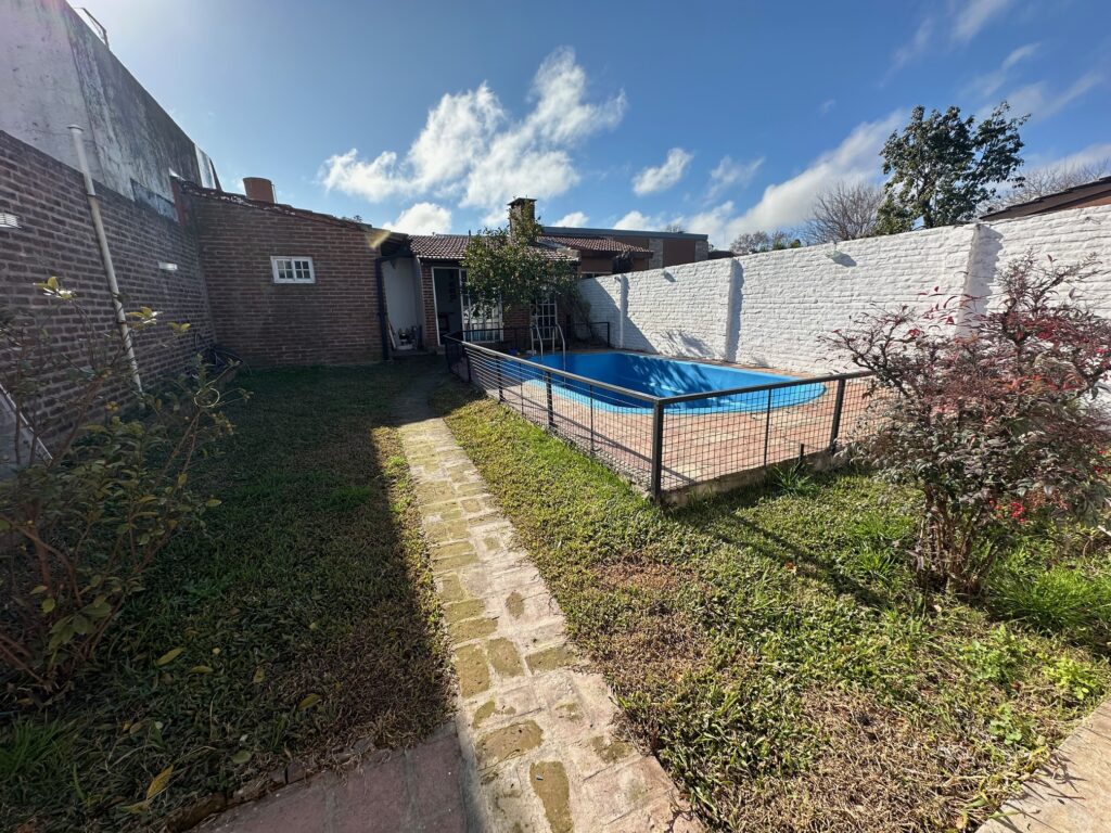 Casa americana en una sola planta, da a pulmón de manzana, excelente lote de 307 m2 le da un espacio ideal para que la familia disfrute un espacio único, al frente encontramos un amplio garage semicubierto, al entrar a la propiedad nos encontramos con un living comedor que se integra a la cocina, una galería de estar familiar que mira hacia al jardín, en un hall íntimo del inmueble encontramos, un baño completo y 2/3 dormitorios con amplio placares. En el jardín se ubica la pileta , que da paso hacia tras de la joya de la propiedad un quincho con parrilla, lavadero, y una dependencia de servicio con baño, o departamento de adolecente.
